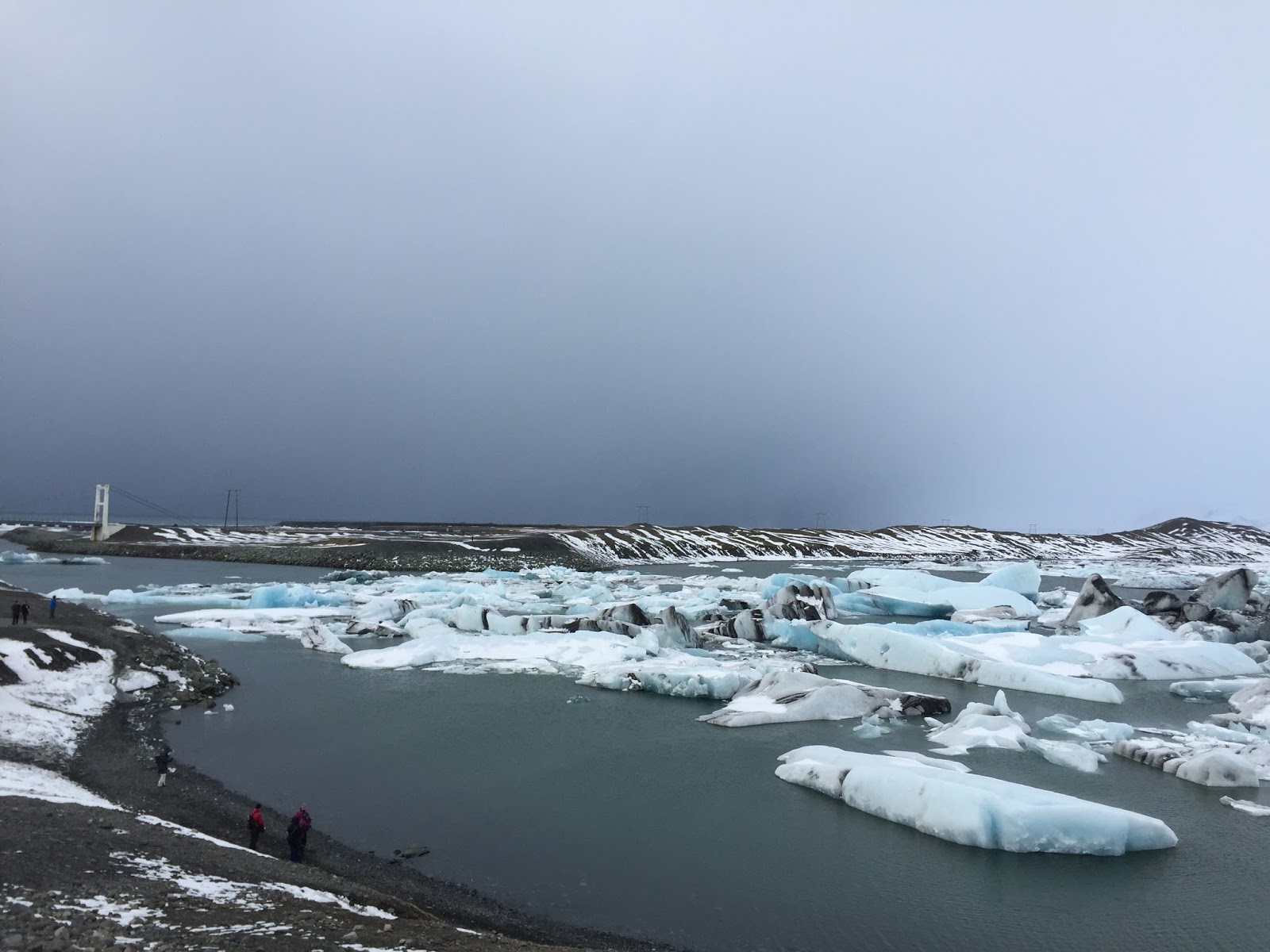 We went to the Glacier Lagoon on the 2nd day. It is breathtaking. One of my favorite sights of the tour... but damn it was coldddddd that day. High winds and snow, real feel was about 20 degrees. Brrrr! After about 20 minutes in the cold, I couldn't take it anymore, so I went to the little shop by the parking lot and we got some snacks... which was basically lunch. A bottle of water, a yogurt, and a sloppily made (but surprisingly tasty) sandwich. $16. Yikes.